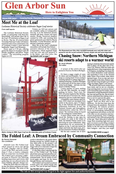 Welcome to the Glen Arbor Sun, a free newsprint magazine distributed throughout Leelanau County, Michigan, and communities surrounding the Sleeping Bear Dunes National Lakeshore. The Sun publishes bi-weekly between Memorial Day and Labor Day, and monthly through the Fall, Winter, and Spring. Read our stories, essays and seasonal coverage, post comments, pick up the paper when you’re in town, and inquire about our advertising rates — both print and online.