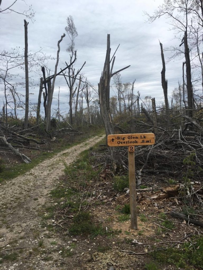 The main trailhead of Alligator Hill Trail is located off Stocking Road just west of Glen Arbor (on M-109 as you are heading toward Glen Haven). Both Apple and Google Maps recognize Alligator Hill Trail when searching. It is an 8.3-mile trail system that offers three main loops with varying lengths. The trailhead has a large map for viewing. There are also paper maps available to take if you fear getting lost or turned around. There is a restroom at the trailhead as well.