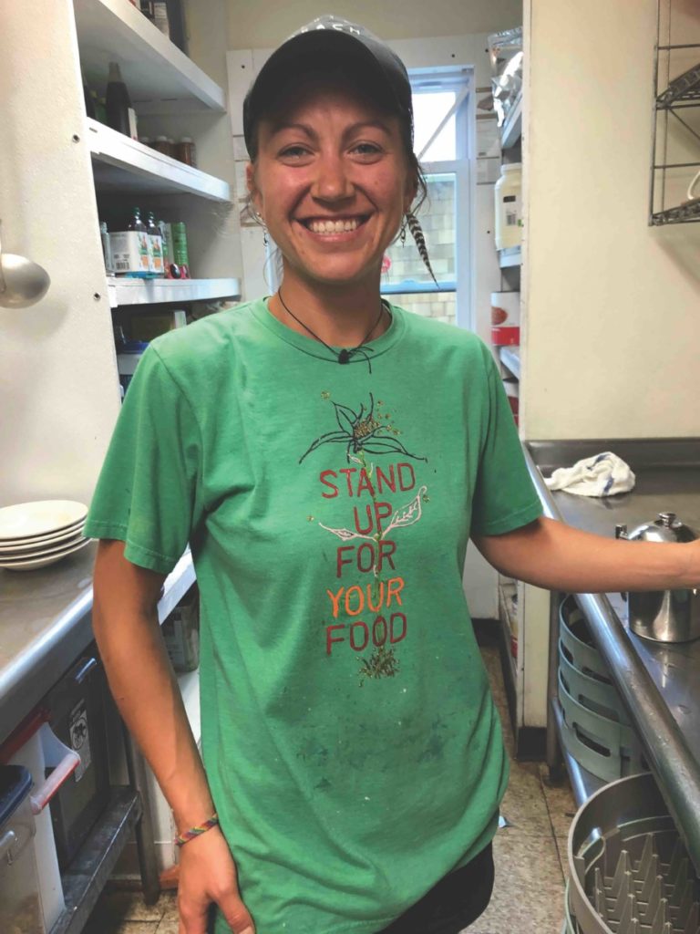 Back in Leelanau County, Amanda has resumed her routine of working the seasonal economy. Born and raised near Cedar on Popa Road at the family strawberry farm, Amanda graduated from Glen Lake High School in 2008. She was working at the Pinecone in Glen Arbor when she was 14. At 16 she started at the Good Harbor Grill as a back cook or dishwasher, helping with orders, busing and prepping, working pretty much wherever she was needed. She has continued “on and off, not every summer, but most of ‘em.” The summer season is intense, requiring “50-60 hours a week until it slows down. Now many of our staff have to go back to school, so the rest of us step up and take over.”