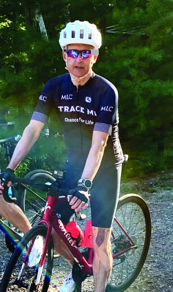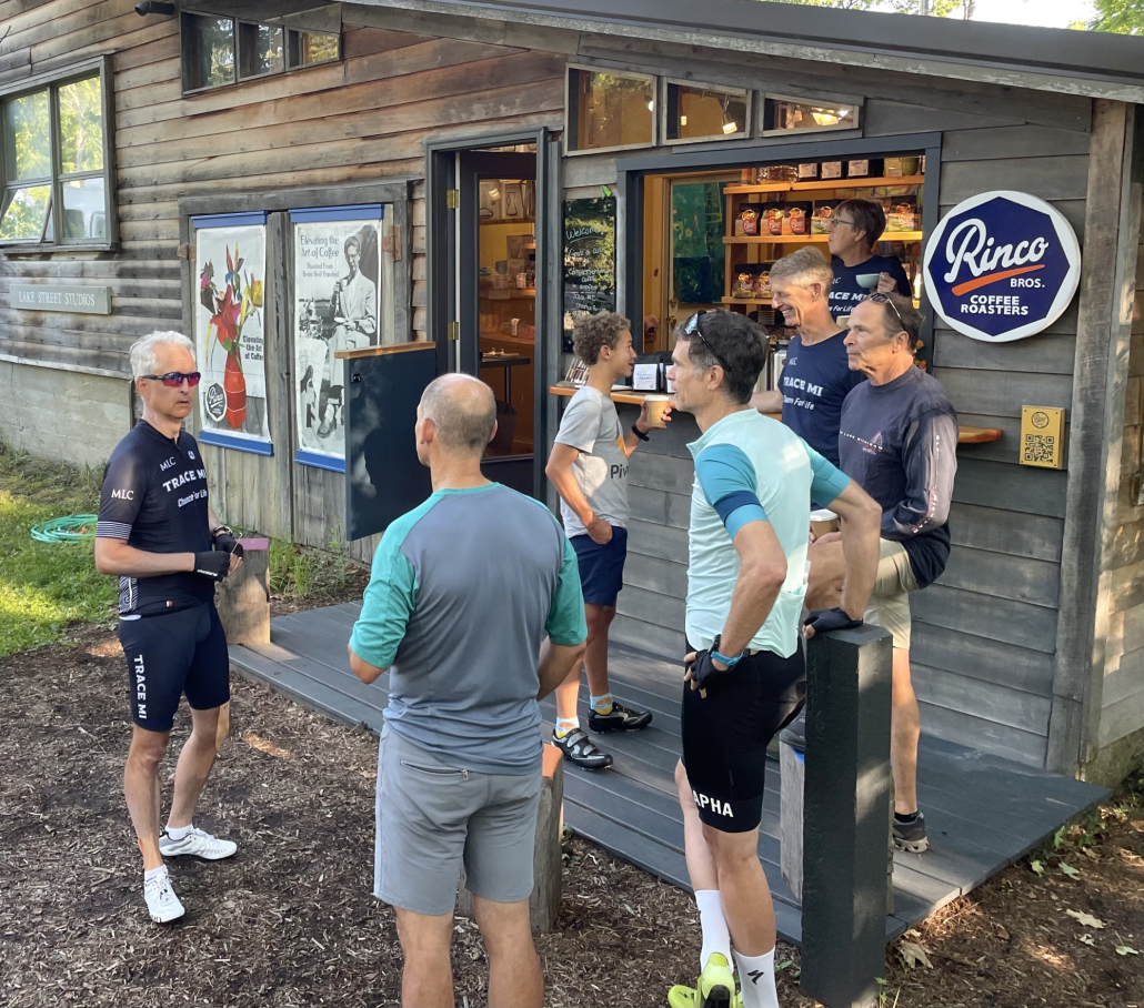 Ward stopped in Glen Arbor as part of the 2,400-mile Trace Michigan tour. He and his wife, Mary, are part-time Glen Arbor residents after buying a home here in 2015, just before the Aug. 2 megastorm. Family, friends, and colleagues gathered at Rinco Bros, the coffee roastery next to Lake Street Studios on Saturday, July 29, to encourage Ward as he began another day on the road. Rinco Bros owner Mark Ringlever offered free coffee to guests that morning. A portion of each sale from the company’s Peloton Power espresso roast coffee benefits CFL.