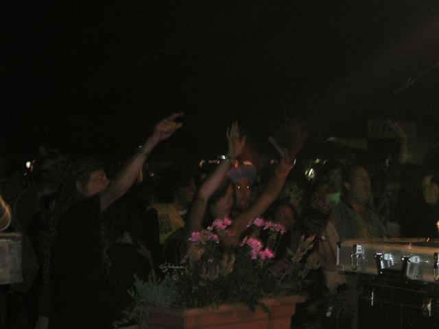The Dunegrass Festival overcame one obstacle after another yesterday to deliver yet another stellar evening of music. First, the power went out at 3:50 p.m., just as Rachel Davis was finishing her set (she went acoustic for the last song). The crowd chilled patiently for over two hours until the juice began flowing again shortly after 6. Subsequent bands limited their sets to 45 minutes apiece (and remarkably caught up to the schedule by 11 p.m.) But during Greensky Bluegrass’ set, the skies opened and dumped a couple 10-minute torrents of rain on the revelers below. Some headed for their tents, others stuck it out in front of the stage. By the time local favorite Steppin’ In It took the stage, followed by Rootstand’s closing act at midnight, Dunegrass was once again aglow in a happy haze of good vibes.