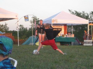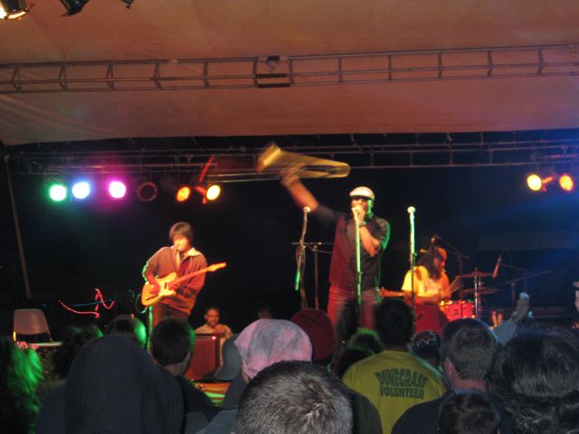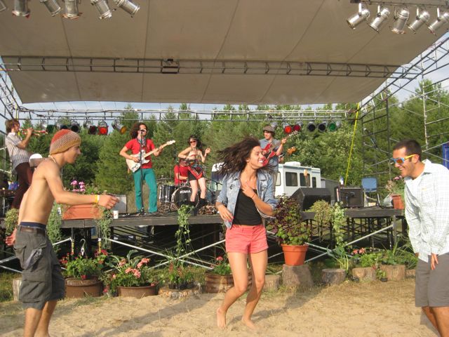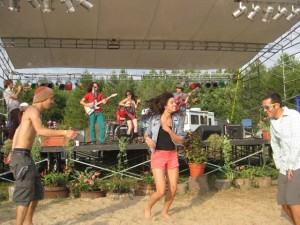 Dunegrass got off to a great start last night (Friday, August 6) with a queue of Michigan bands, jamming and crooning the happy crowd. The temperature dropped considerably as dark fell, but K Jones and the Benzie Playboyz and Big Sam’s Funky Nation got us out of our sleeping bags and dancing in the beach sand in front of the stage.