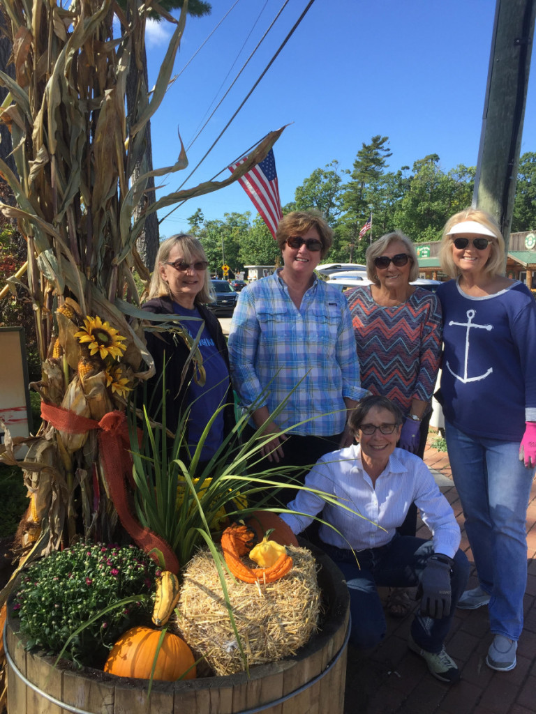 Members of the Glen Lake Garden Club took advantage of a recent sunny day to re-decorate the flower barrels in Glen Arbor for the fall. The all-volunteer organization has served the area with conservation and community beautification projects for 40 years. From left: Chris Nettleton, Glen Arbor beautification committee co-chair Maureen Doran, Lorainne Kuk, Nancy Batterson, and Sharon Oriel. Not pictured: garden club president Linda Young.