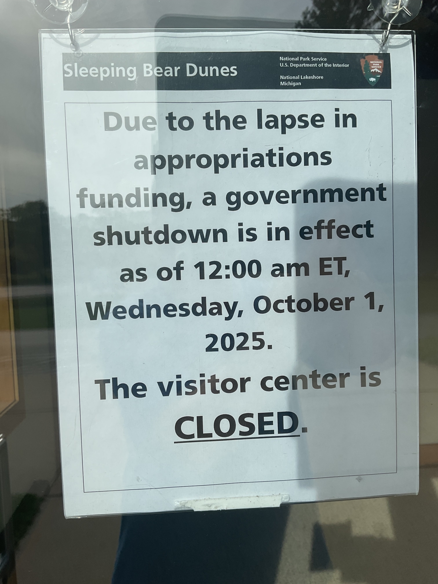 The Sleeping Bear Dunes National Lakeshore’s visitors center in Empire is closed due to the federal government shutdown that started today.