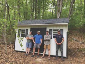 This summer, volunteer power doubled to four able-bodied and determined men – three of them fathers to LPS students – and work efforts ramped up. Seguin and Suttman, with help from Bill Duperon and Chris Haines, installed an 8’ x 14’ wooden outbuilding on the island property to house emergency materials, work equipment, chairs, tables, and basic camping supplies.