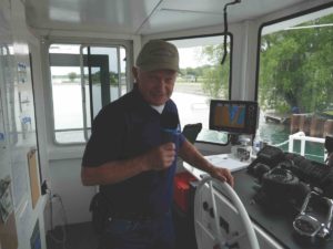 Captain Hoy has had a long maritime career, now nearing his 50th year of captaining various vessels. He started in Traverse City as First Mate aboard the Miss Coho. “My first charter boat I captained was in 1972 with the Dawn Marie, docked at the Holiday Inn on West Grand Traverse Bay,” he related. “I began as First Mate with Dawn Marie and I later bought her.” That stint was nearly five years. Next, he captained the 120-foot Bay Queen in Charlevoix. Then he skippered the Star of Chicago, the Star of Charlevoix, and the Star of Detroit, a 600-foot passenger for Star Line Cruise Corporation (not the Star Line of the Mackinaw Island ferries). Then, during a stint in Lake Tahoe, he met his forever mate and now wife, Tammy Hoy. Together they work to make the Discovery enjoyable for their guests while on board.