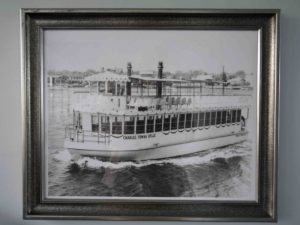 Discovery, in her early days, worked as a “false” paddle wheeler out on the East Coast. She was constructed by the highly esteemed passenger boat builder, Blount Boats, “Taskmasters Of The Sea,” in Warren, Rhode Island, back in 1974. Designed in the style of an early 20th century steamboat, she was built to accommodate up to 330 passengers. Never designed as a true paddle wheeler, but built as one for its looks, she began her service out of Charles Town, WV., then under the name the Charles Town Belle.