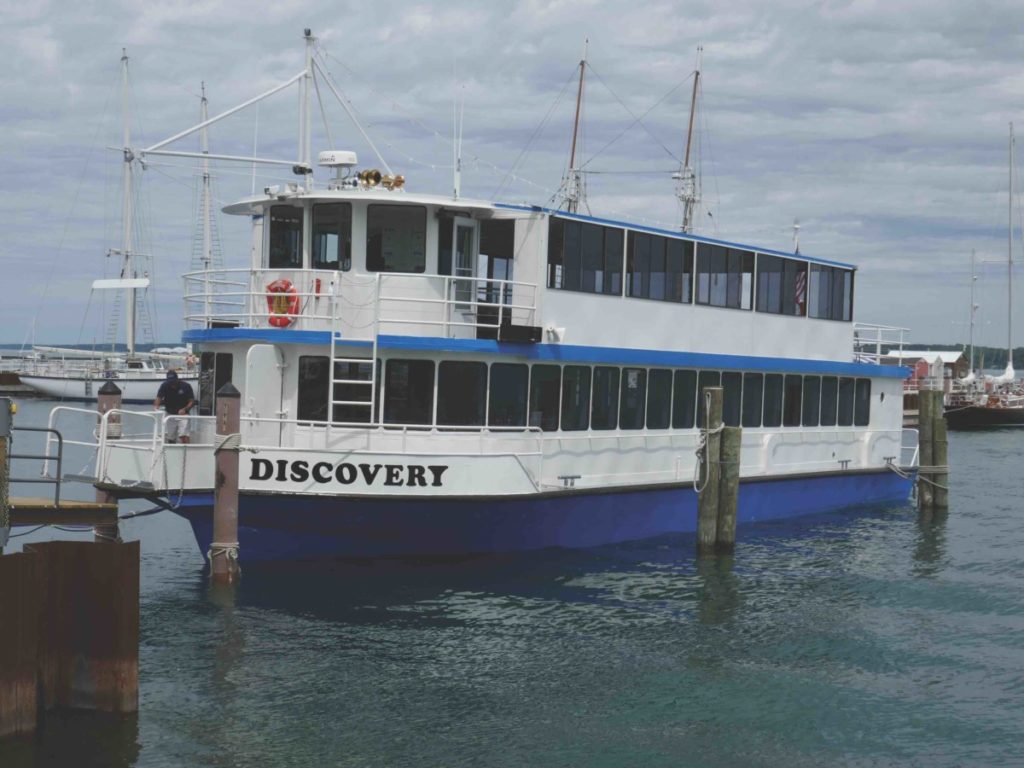 Later she was sold, renamed the River Rose and operated as a charter boat out of New York City. In the fall of 2018, she was brought to Michigan from New York City by Grand Traverse Navigation Company, navigating through the Hudson River, Erie Canal, Oswego Canal, Lake Ontario, Welland Canal, Lake Erie, Detroit River, Lake St. Clair, St. Clair River and Lake Huron and up to St. Ignace. There, the vessel spent more than two years at dry dock receiving a complete renovation by her new owner, Captain Hoy. He decided to name her Discovery after what would be her future home at the Discovery Center & Pier in Traverse City. “The Discovery offers a new and creative way to get our locals and tourists to experience West Grand Traverse Bay,” said Matt McDonough, CEO of the Discovery Center. “The new venture fits right into our core programs,” he said.