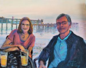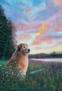 Back to your question: my paintings are all about the people who will see it, yet I have to paint to satisfy myself. Sometimes, when I paint people, like the one I did of [the Wheeler family], and I capture the essence of a person, it brings sheer joy. I had that occur with the portrait I did of Ty and Cathy Wessell sitting at an outdoor cafe. Every portrait goes through a monster stage for me, and when the real person emerges, it makes me smile. My most recent paintings are always the most thrilling. So I have to say the one I just finished of Fisher, the Rabidouxs’ beautiful golden retriever, by Fisher Lake was a thrilling project.