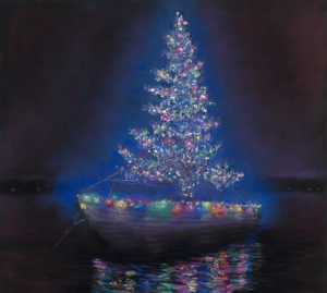When Barb Siepker bought the painting of the Christmas Tree Boat for her son, Frank, Jr., who puts it up every year, that was a thrill — especially since the boat I painted ended upside down in Glen Lake after that windstorm. Barb said it was his best one yet, and I captured it. Getting the effect of spilling water over your heads in your Lake Bath was fun. Capturing the light of a piece is fun. It’s all fun; it’s all challenging, and I grow through the frustration until I come out the other side to triumph. Such a journey.
