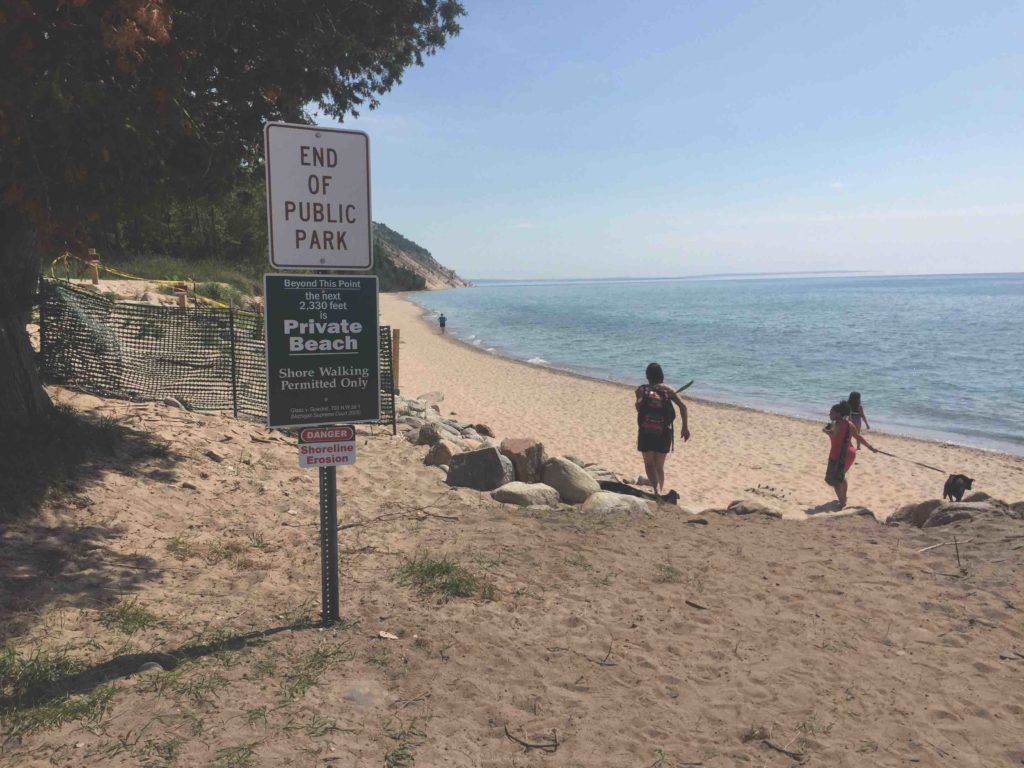 Different today from the three decades since my earlier walk in solitude are signs that read, “End of public beach,” along with a private property sign indicating the State of Michigan Supreme Court ruling in 2005 that permitted shoreline walking. [The United States Supreme Court reaffirmed the public’s right to walk the shoreline along the “ordinary high water mark” even along privately-owned beaches in February 2019 when it declined to hear an Indiana case filed by riparian landowners who live along the south shore of Lake Michigan. Incidentally, the plaintiffs lived in Long Beach, Indiana—the childhood home of Supreme Court Chief Justice John Roberts —Editor]