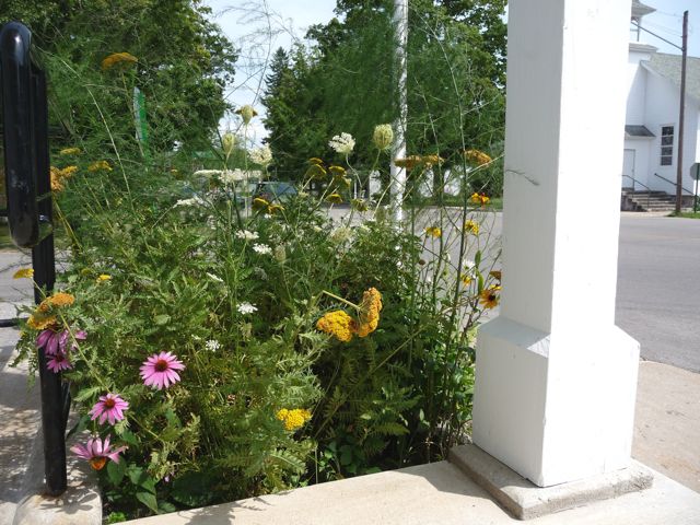 Beds were installed at the southeast corner of the town hall, along the east wall of the Post Office (surreptitiously hiding the air-conditioning unit), in front of State Savings Bank and at the Empire beach turnaround.