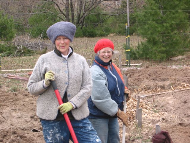 Thanks to Johnson’s ability to see potential in a fallow field and her belief in community, a portion of a reserve septic drain field planned for future use in phase 5 of the New Neighborhood has become a 50-by-80-foot community garden area. Raised vegetable beds were constructed of slab wood provided by her husband’s timber-framing business, White Oak Timber Frames of Suttons Bay. A nearby neighbor currently supplies water by hose, but the gardeners hope to obtain permission from the village to access a water hook-up on lot 63, also communally held. Each gardener contributes $25 per year for infrastructure.